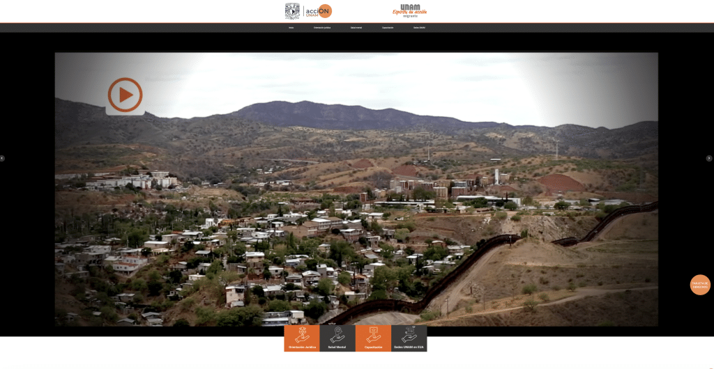 A través de UNAM Acción Migrante, especialistas de diversas entidades académicas de la UNAM brindan atención psicológica, orientación jurídica y capacitación laboral. Esta iniciativa se desarrolló con la participación de las cinco sedes de la UNAM en Estados Unidos (Los Ángeles, Tucson, San Antonio, Chicago y Boston), así como de la Estación Noroeste del Instituto de Investigaciones Jurídicas en Tijuana.