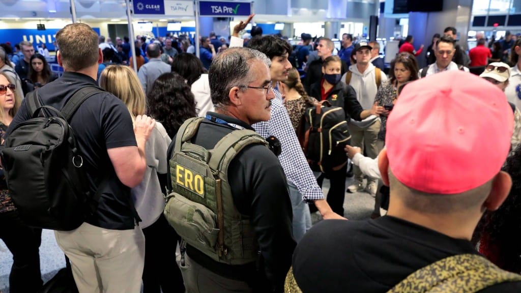 Aunque los agentes federales suelen estar presentes en aeropuertos internacionales, los agentes de inmigración rara vez son visibles en los puntos de control de la TSA, que son la primera línea del transporte aéreo nacional.