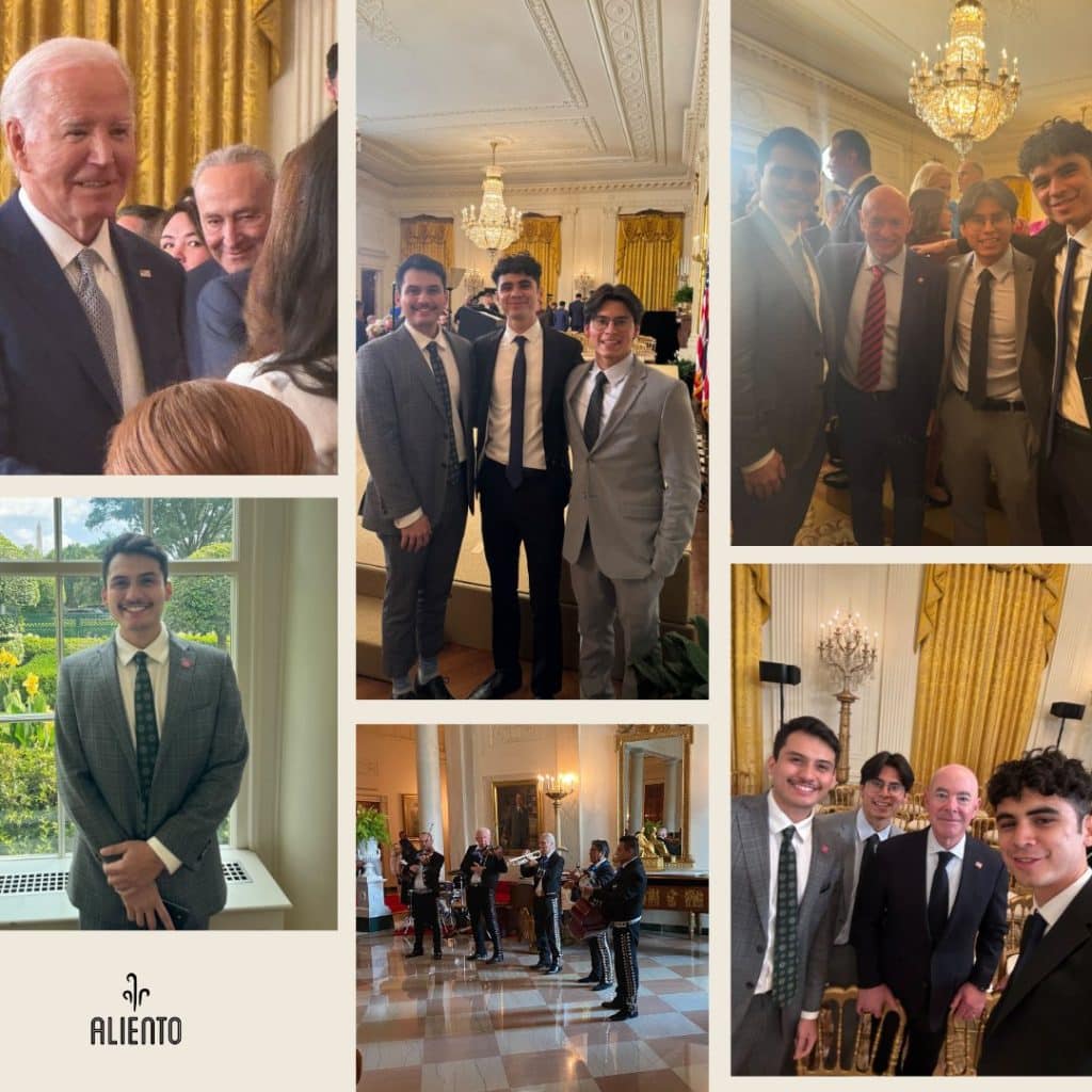 Becarios y representantes de Aliento en la Casa Blanca el 17 de junio, durante el acto por los 12 años de DACA y el anuncio de la orden ejecutiva sobre inmigración del presidente Biden (Imagen y fotos: @AlientoAZ en X).