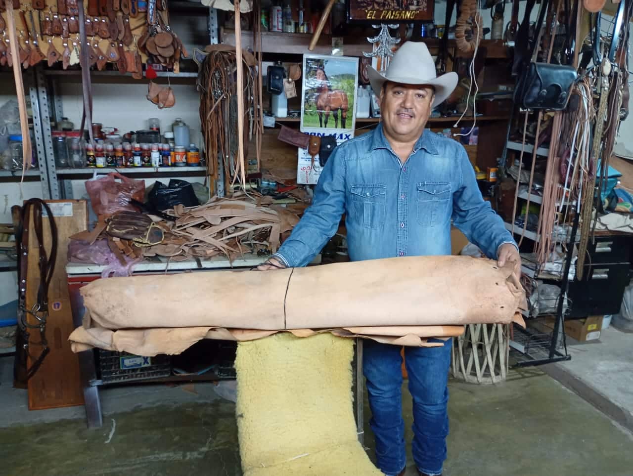 El elemento principal de este oficio es el cuero, que compra enrollado en un almacén de la ciudad; son pocos los talabarteros que hay y que podrían ser su competencia, pero “el sol sale para todos”, comenta Anselmo en entrevista para Conecta Arizona.