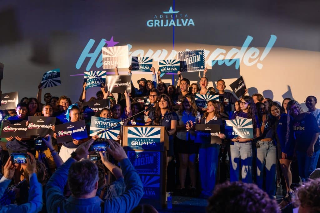Tucson, Arizona. – Con los ojos brillosos de orgullo, los hijos de Adelita Grijalva fueron los primeros en tomar el micrófono la noche de su victoria. “Nuestra mamá es esa mujer que siempre está en los eventos, en las reuniones escolares, animando a todos a participar. Es una verdadera luchadora y siempre estará aquí para el sur de Arizona”, dijo su hija Adelina, entre aplausos de sus familiares, amigos y colaboradores que la acompañaban.