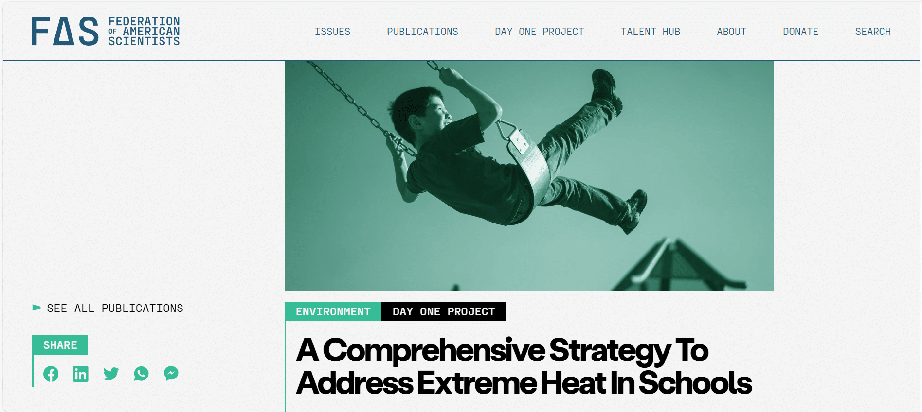 En abril de 2024, la Federación de Científicos Americanos (FAS, en inglés), una organización política sin ánimo de lucro, también advirtió del impacto del calor en las infraestructuras escolares.