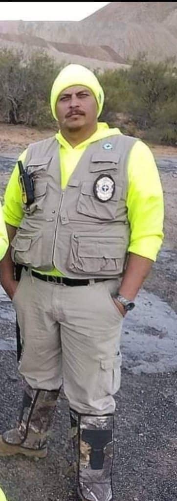 “Cuando vamos al desierto primero nos preparamos mentalmente y físicamente porque es diferente el clima, tiempo de calor, tiempo de frío, lluvias. Vamos, se puede decir, al azar porque no sabemos qué nos podemos encontrar: hay muchas serpientes, animales venenosos, uno puede ser atacado por jabalíes, coyotes, incluso hay partes donde hay osos. Tenemos que tener ese cuidado, tenemos que cuidarnos del calor, del frío igual e ir bien abrigados, en tiempo de lluvia tener cuidado de no meternos donde hay crecientes porque podemos quedar atrapados por las crecientes del otro lado de los arroyos. Son muchos los factores de riesgo que los grupos de búsqueda y rescate corremos. También (enfrentamos) el peligro de si andamos en montañas de caernos en algún tipo de accidentes. O sea, tenemos que cuidarnos unos a otros porque somos un equipo y si miramos que a alguien le dio un golpe de calor o sufrió presión alta o presión baja tenemos que tomar la decisión de retirarnos y volver a comenzar el siguiente día la búsqueda, porque es primordial la vida de la persona que se sintió mal en ese momento”.