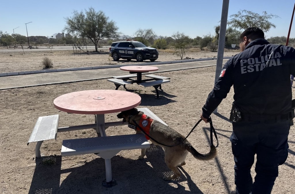 El trabajo del Binomio K-9 dio resultado positivo en una inspección preventiva al poniente de Hermosillo, en el Parque Metropolitano, ubicado al final del Bulevar Héctor Espino.