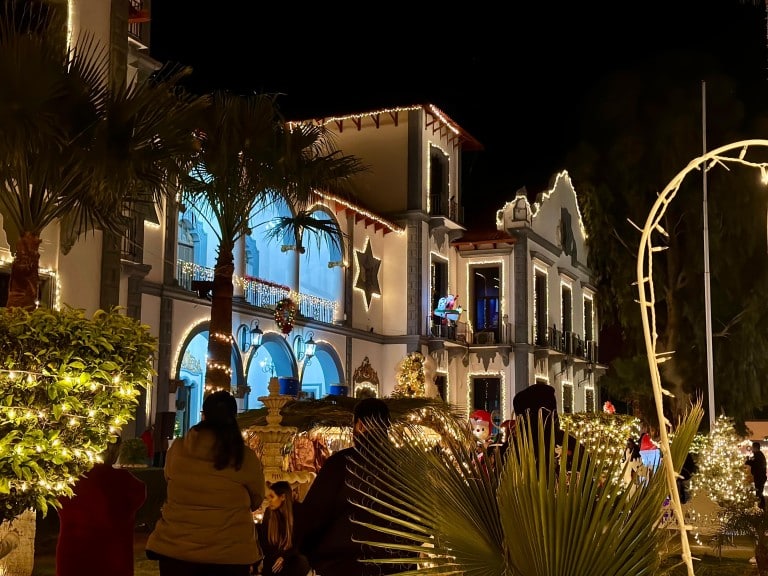 Cientos de familias atendieron la convocatoria para reunirse en la explanada del Palacio Municipal y ser testigos del encendido de las luces navideñas.