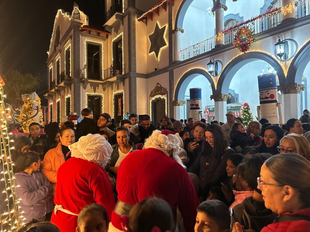 La presencia de Santa Claus y su esposa alegró a niños y adultos en la inauguración de la temporada navideña en el Pueblo Mágico. Foto: Cortesía Gobierno Municipal