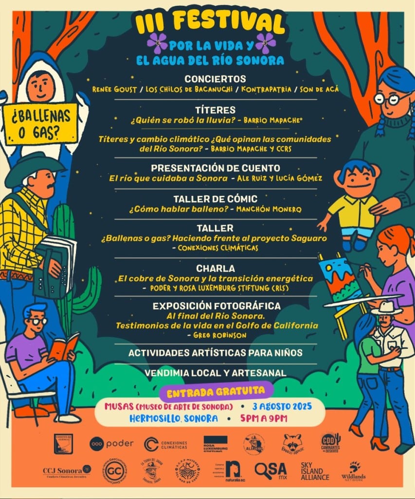 Respecto a los 11 años del derrame de Grupo México, el grupo de activismo Poder, y otros, convocó a la ciudadanía en general a conmemorar este hecho que ha cobrado vidas y afectado la economía y el desarrollo de los pueblos en lo que llaman Tercer festival por la vida y el agua del Río Sonora.