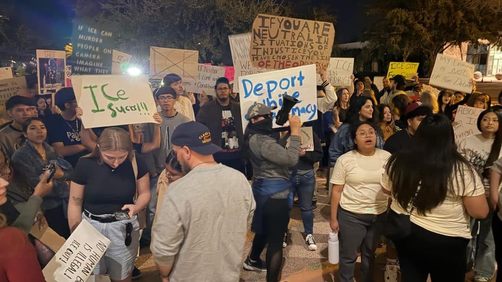 Shasta, estudiante de ASU West que asistió con compañeros de la universidad, expresó: “Ellos saben que Arizona tiene muchas minorías, especialmente Surprise, Avondale, El Mirage y Glendale, donde viven personas hispanas. Creo que lo hacen con el propósito de ir tras los vulnerables, por padres que van por sus hijos a la escuela. Esto es intencional y cruel.”