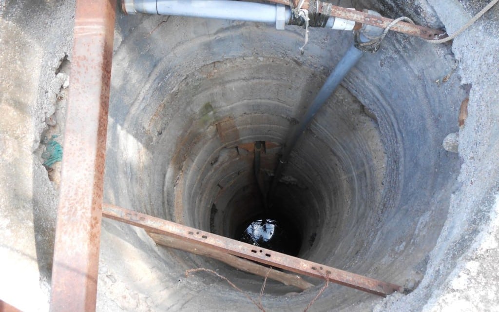 El pozo tendrá como unos seis meses que se bajó de plano, ya. Que se bajó ya completo. No tenía nada, y ahorita tiene el charquito que se le ve ahí nomás ya. Es todo lo que se le mira de agua. Las milpas, ya ven, todas las milpas tiradas. ¿Por qué? Porque no hay agua.