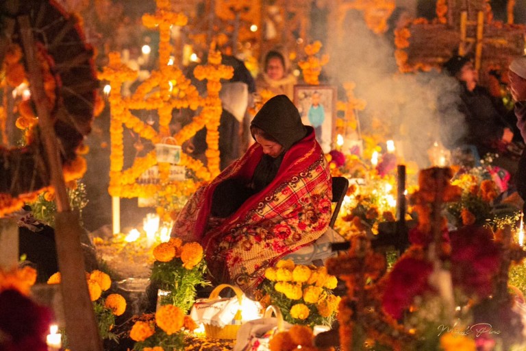 Con una suave línea en el detalle que brinda armonía y calidez a una fecha que es importante en las celebraciones mexicanas -se exponen las imágenes captadas por Migde-, fiesta que ha tomado más renombre en la última década; misma que ha evolucionado y se ha transformado, ha llegado a otros países y destaca por su colorido y la imagen que trastoca la muerte, que pasea, que “vive” entre los vivos por unos días.