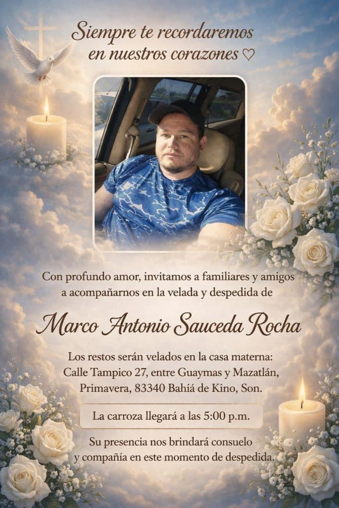 Los restos de Marco Antonio serán velados en Bahía de Kino, en la casa materna, así lo informó Ceci Patricia Flores Armenta en Facebook. A la salida del Servicio Médico Forense, Semefo, en Hermosillo, la activista anunció que, una vez que sepulte a su hijo, se va de manera permanente a Sinaloa.