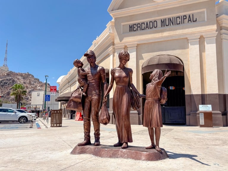Algunas de las esculturas que están alrededor del Mercado Municipal son Sonorita, el venadito danzante; de la autoría de Oscar Cedillo, la puedes encontrar en el paseo peatonal Miguel Ángel Figueroa. Muy cerca de ahí, en las calles Monterrey y Matamoros, está el Monumento a la familia, de la autoría de Marlon Balderrama, y en la esquina de Morelia y Guerrero hay un busto dedicado a Agustina Rivas Núñez, fundadora de la tienda de vestidos para novias, quinceañeras y primeras comuniones, La Lagunilla.