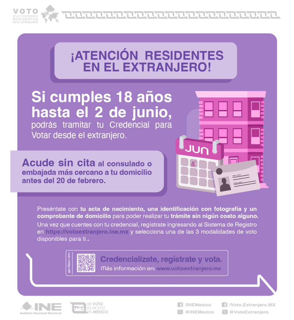 🇲🇽 “Para poder participar en la elección, es necesario tramitar la credencial para votar hasta el 20 de febrero. Recomendamos que la saquen cuanto antes para que puedan contar con ella y elegir la modalidad de votación, pues si les llegara después del 20 de febrero solo podrían votar por la modalidad presencial, es decir, acudiendo a alguno de los 23 Consulados que se habilitarán para votar” (Raúl Cruz).