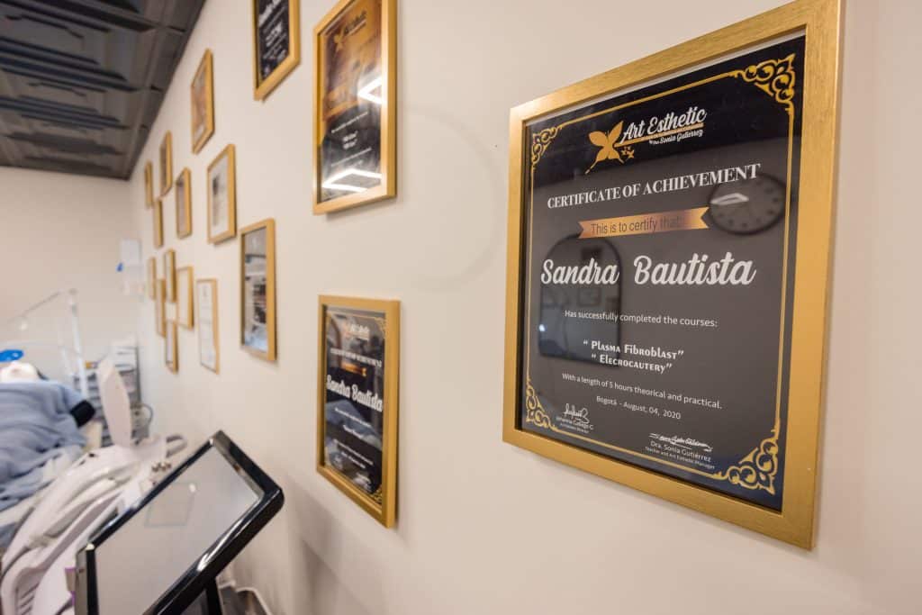 Las certificaciones y diplomas en la pared reflejan años de preparación y aprendizaje constante de Sandra Íñiguez, base del trabajo profesional que hoy ofrece a su comunidad en Arizona. Foto: Daniel Robles / Conecta Arizona