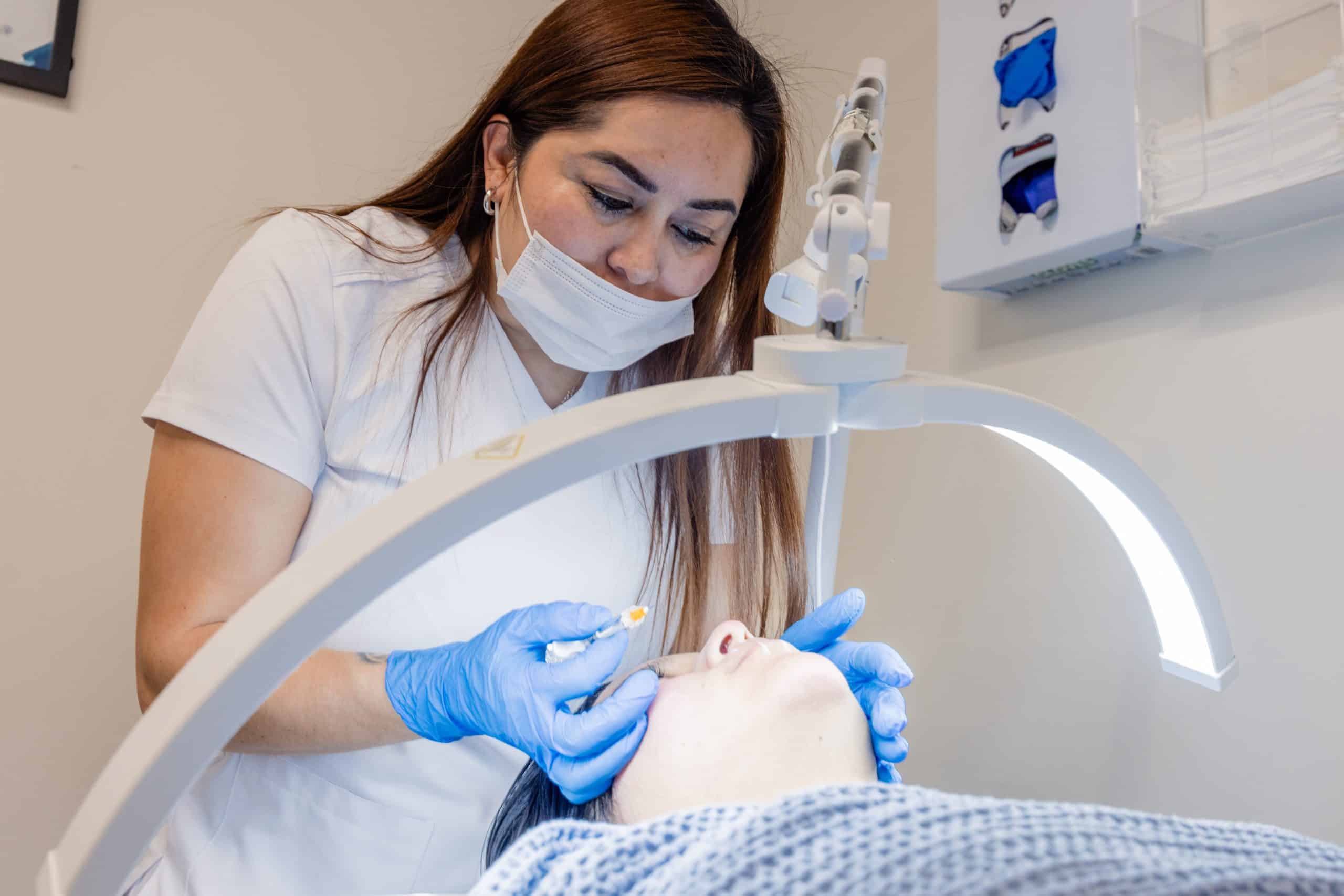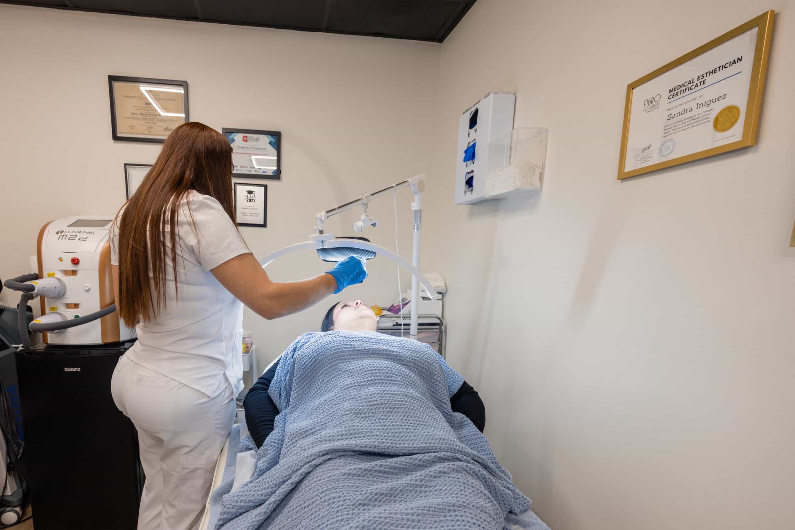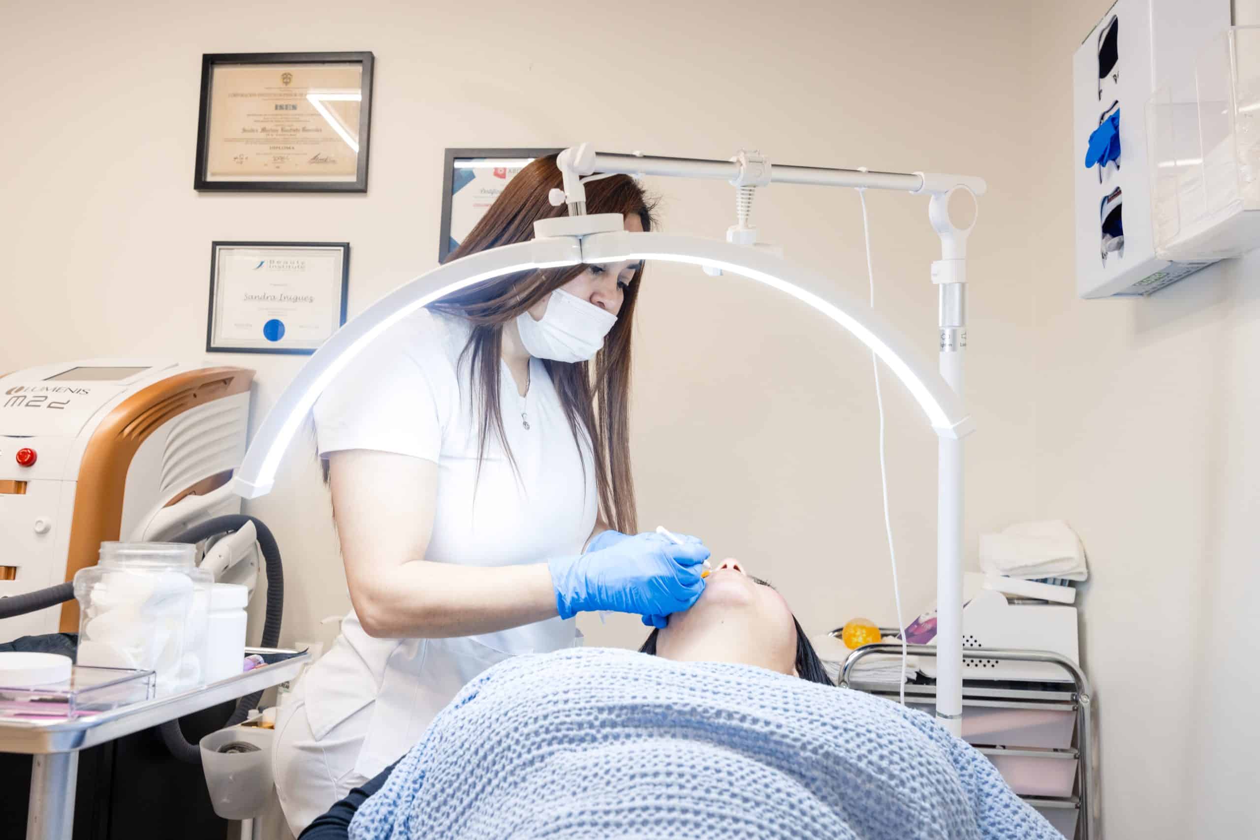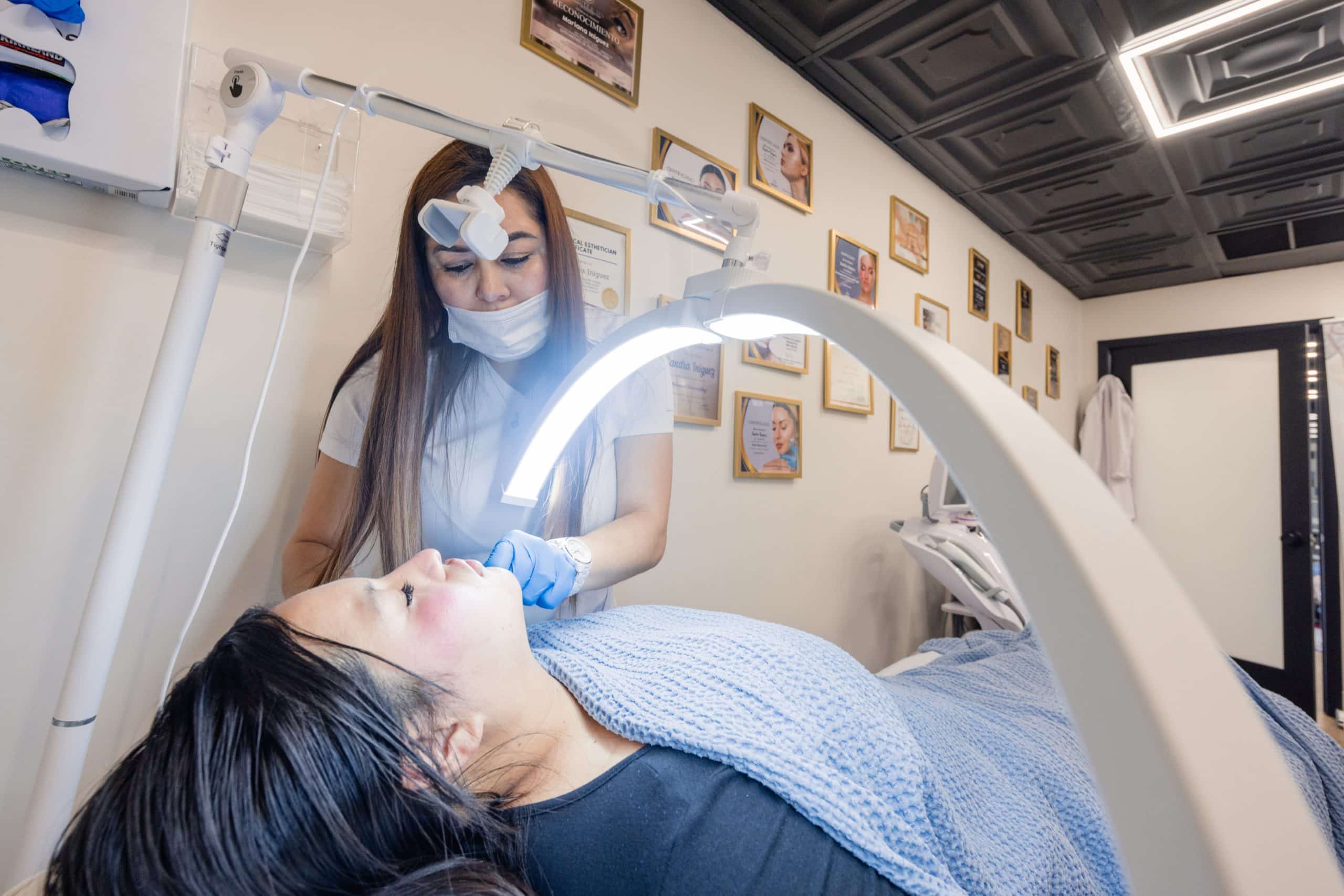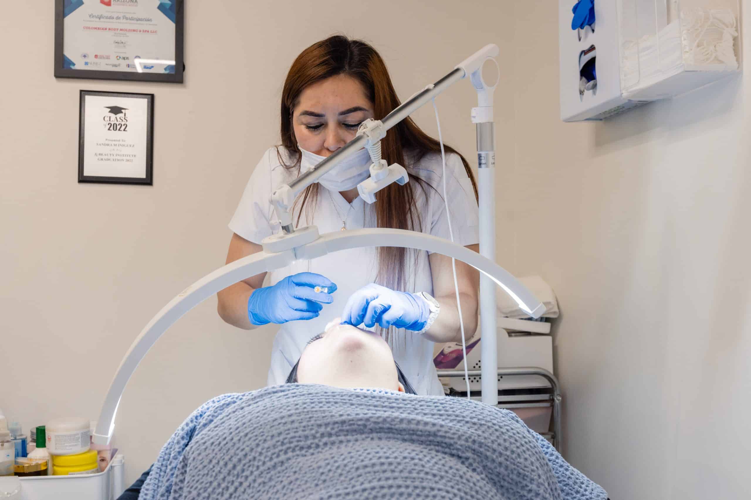 Sandra Íñiguez atiende a una clienta en su spa en Arizona, donde combina experiencia, formación y cercanía para ofrecer tratamientos estéticos enfocados en el bienestar y la confianza de cada persona. Foto: Daniel Robles / Conecta Arizona