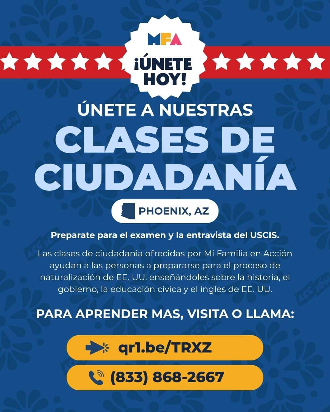 “Quienes son elegibles para la ciudadanía, contar con la información adecuada es clave y marca toda la diferencia para tomar el examen con confianza. Las clases de ciudadanía que ofrece Mi Familia en Acción ayudan a quienes están solicitando a prepararse para el proceso de naturalización- aquí enseñamos sobre la historia de los Estados Unidos, gobierno, educación cívica e inglés”, dijo la Directora Estatal de Arizona, Monica Sandschafer.