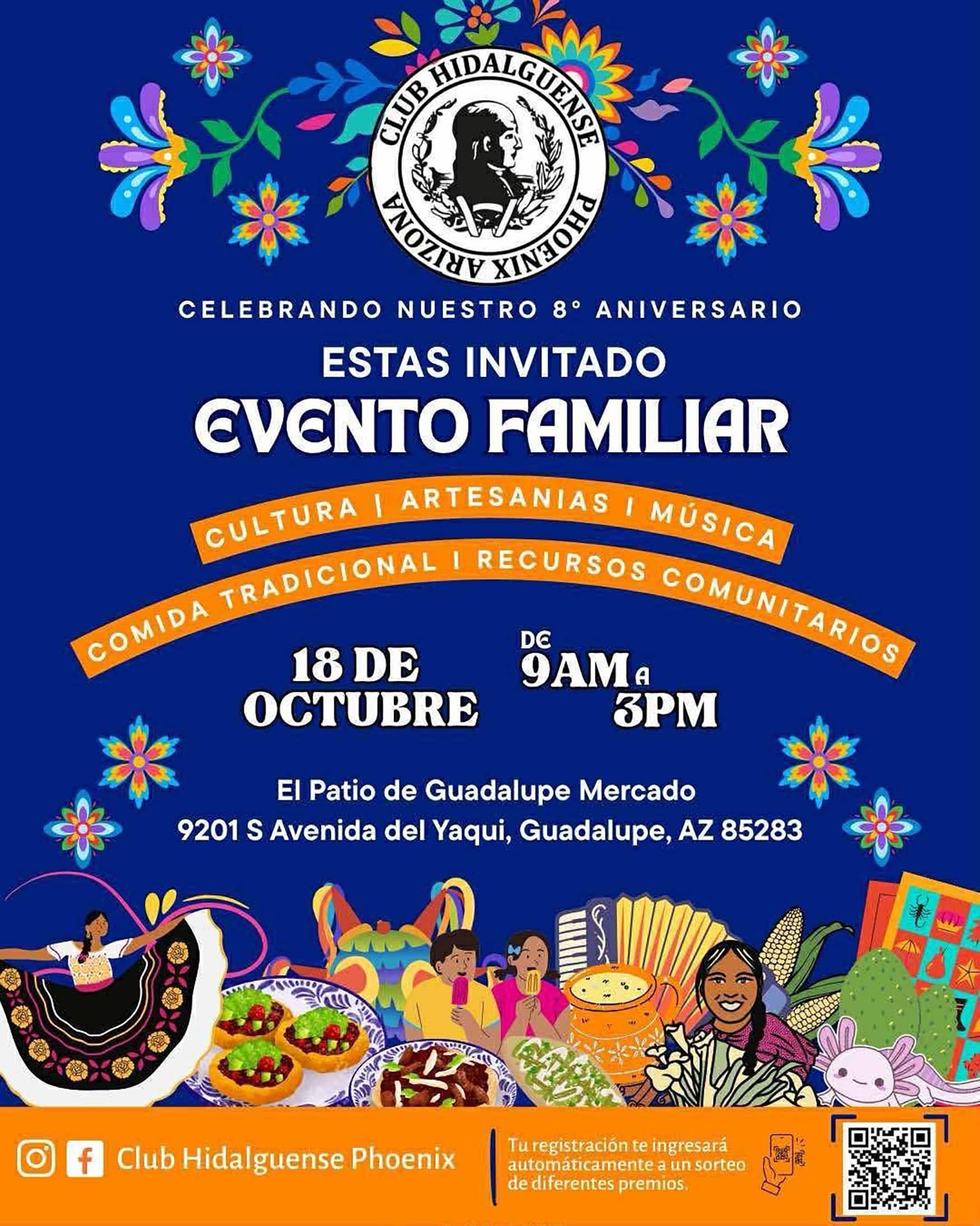 El Mercado de Guadalupe 9201 S Avenida del Yaqui, Guadalupe, Phoenix, AZ, United States¡El 8º aniversario del Club Hidalguense Phoenix! Disfruta de comida local, artesanías, presentaciones culturales y recursos importantes para familias inmigrantes. Este evento es más que una celebración — es un llamado a la acción. Juntos honramos nuestra cultura, compartimos información vital y fortalecemos nuestra comunidad. Cuando nos unimos, nos informamos y celbramos, nada nos detendra.