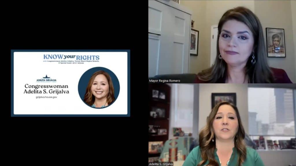 Tucson, Arizona. – En medio del aumento de operativos migratorios federales y un clima de temor entre familias inmigrantes, la congresista Adelita Grijalva, la alcaldesa de Tucson Regina Romero y abogados de derechos civiles participaron en un foro virtual para informar a la comunidad sobre sus derechos constitucionales y los recursos disponibles ante posibles detenciones por parte de agentes federales.