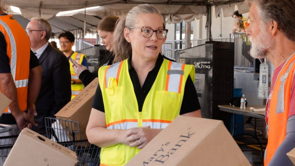 Phoenix, Arizona. – La gobernadora de Arizona, Katie Hobbs, visitó este jueves el Banco de Comida St. Mary’s, en el oeste de Phoenix, donde decenas de voluntarios trabajan cada día para entregar alimentos a cientos de familias que dependen de esta ayuda. En medio del cierre parcial del gobierno federal, Hobbs hizo un llamado directo al presidente Donald Trump para que tome medidas inmediatas que eviten que los beneficiarios del programa de asistencia alimentaria SNAP se queden sin recursos.