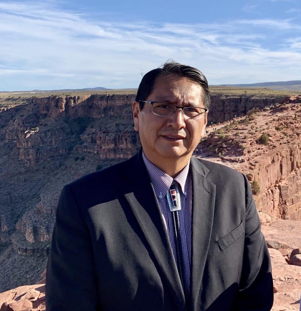 ☕ ¿Quién es? Nació en Tuba City, Arizona, y creció en Shonto, Arizona; representa a la reserva indígena Nación Navajo: es Áshįįhí (Gente de la Sal) nacido para Ta’neeszahnii (clan Tangle). Cuando era joven, superó una adicción al alcohol y a los 29 años fue vicepresidente del Capítulo Shonto de la Nación Navajo. Fue miembro del Consejo, vicepresidente y -entre 2019 y 2023- presidente de la Nación Navajo: dirigió al pueblo navajo durante la pandemia y recuerda que, en ese momento, obtuvo fondos para construir instalaciones de atención médica y hogares para veteranos, invirtió en seguridad pública y contrató agentes de policía, reforzó la infraestructura, mejoró los caminos rurales y llevó agua potable y electricidad a residentes que antes no recibían servicios.