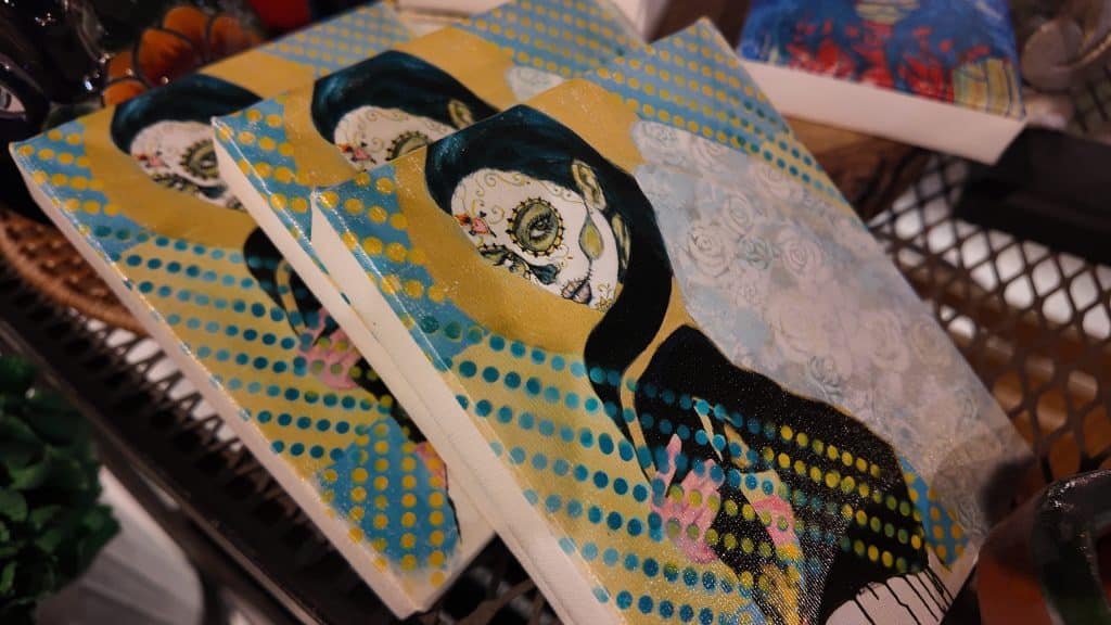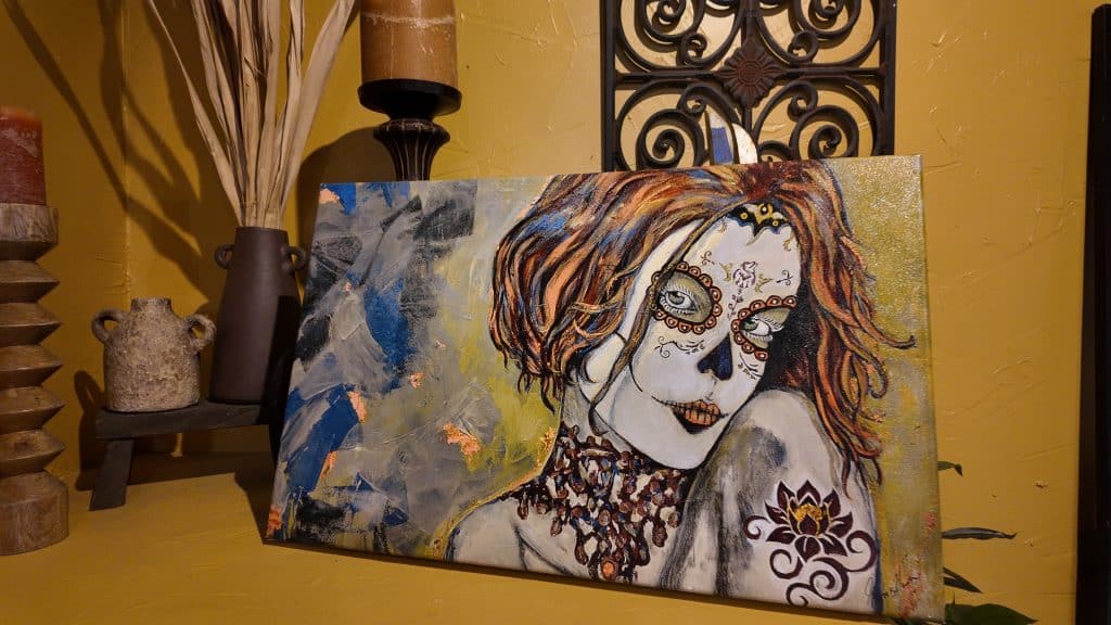En el nutrido catálogo de artistas del Valle del Sol, Héctor Llamas destaca por su dominio del negocio del arte, su trato afable y su sello inconfundible: pinta catrinas. Sus obras se exhiben en galerías y espacios privados, como el restaurante “Carnitas Cochiloco” en Mesa, donde tuvo lugar esta entrevista. Además, viajan por Estados Unidos y otros países cuando su autor es invitado a festivales.