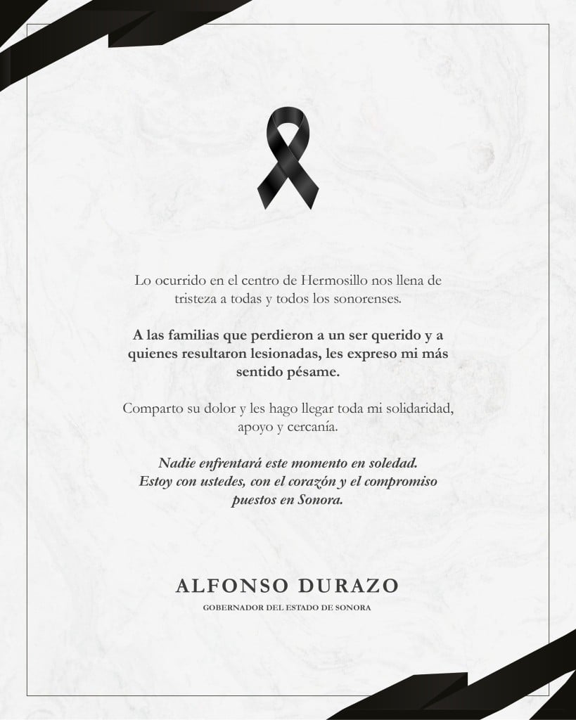Sobre este hecho, el gobernador Alfonso Durazo, publicó en su cuenta de X un video con un mensaje de condolencias para los familiares de las personas afectadas por el incendio. Asegurando que se realizarán todas las acciones necesarias para apoyar a las familias.