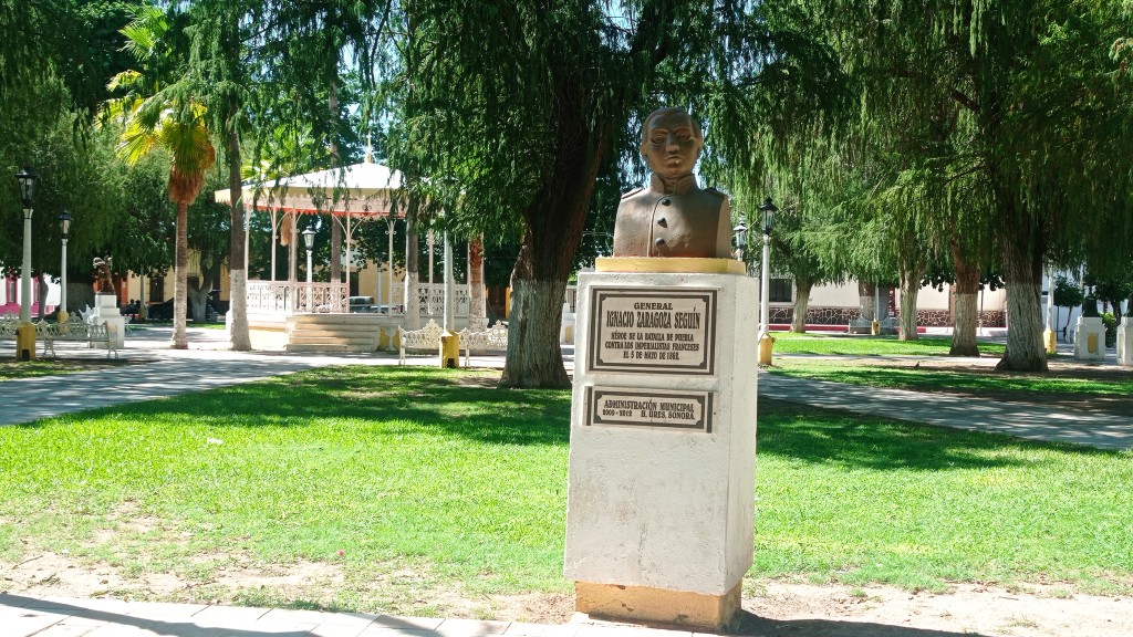 Un busto en memoria del general Ignacio Zaragoza se encuentra muy cerca del kiosco, en el centro de la plaza principal del Pueblo Mágico. Foto: Judith León