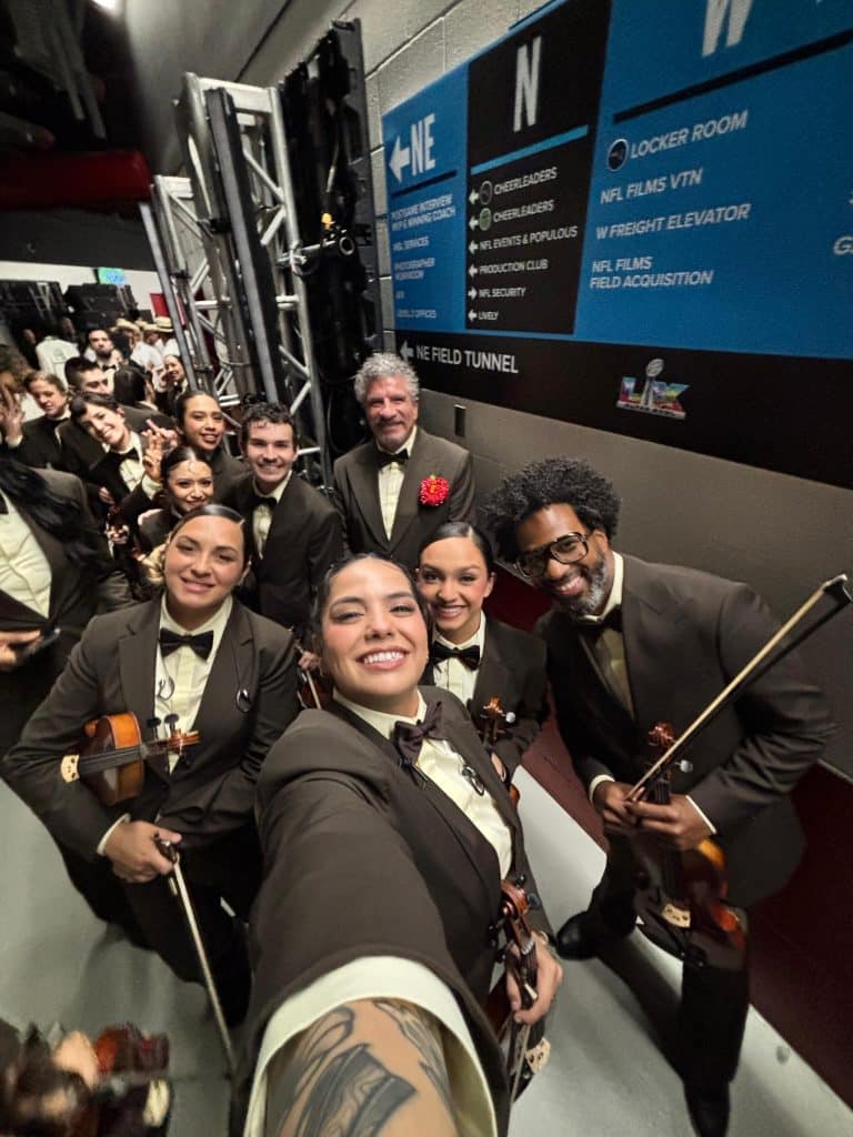 Julissa Domínguez, joven orgullosamente tucsonense y de raíces mexicanas, brilló vestida de mariachi mientras interpretaba el violín en la presentación de Bad Bunny durante el evento deportivo más visto del mundo, llevando el talento del sur de Arizona a uno de los escenarios más grandes del planeta.