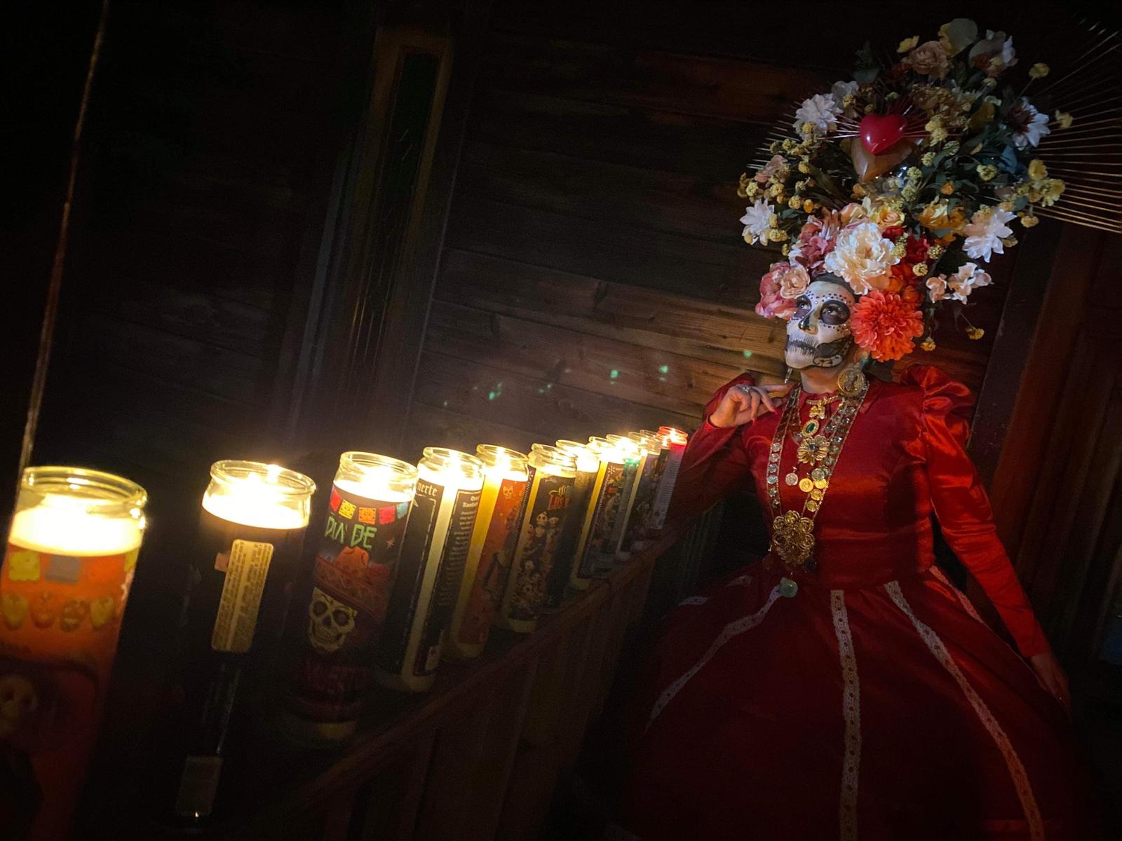 “Mayas, aztecas daban culto a la muerte, que es cuando ya no tienes nada que ver en el ámbito terrenal; es la idea de que nuestros cuerpos siguen, pero nuestras almas se desprenden. Entonces, para poder ayudarlos en esta transición, se le daba un rito a la muerte y se hacían sacrificios de muerte para los dioses, para el agua, la lluvia, el viento, el fuego. Pero estamos hablando de otro tipo de tradición a la que estamos celebrando. Y si nos vamos al norte, centro o sur de México, celebramos de diferentes maneras. No es miedo, no es satanismo, no es invitación a que vengan los muertos y se desaten las almas. Por eso precisamente en el altar se ponen velas, porque tienen un significado de luz: abres el campo, se pone un pasillo de flores para que vengan a la luz. Todas son creencias que si quieres adoptarlas está perfecto y si no quieres adoptarlas está bien: son nuestras tradiciones mexicanas, con las que crecimos. Creer en algo, mientras te una como familia, está bien. Es bien padre que esta creencia te una como familia: preparar el altar, comer pan de muerto, escuchar la música. Siempre hago hincapié es que no deben estar tristes, es una celebración de la vida: no debe de haber tristeza, debemos celebrar a nuestros difuntos con amor, con gusto, esperarlos. Los mensajes llegan, se te aparecen en los sueños, en las comidas. Habla con ellos; si tienes cosas que decirles o preguntarles es el momento, y sobre todo ya no les llores, porque cuando lloras se abre otro tipo de campo. Son muchas cosas a través de la energía. En la cultura de la ofrenda es maravilloso saber que tenemos que celebrarlo, y no hacerlo con tristeza sino con alegría”.