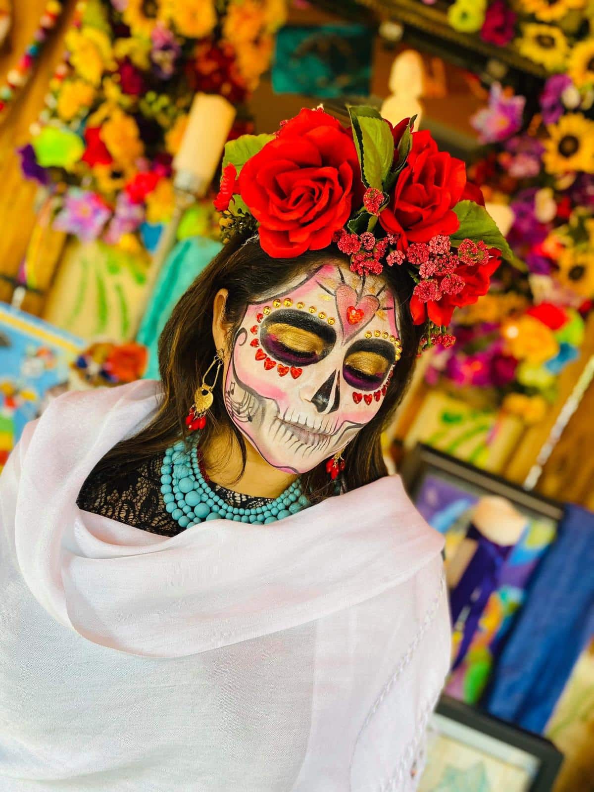 “Exactamente, y a la que vamos a llegar a tiempo. A través de mis talleres y maquillajes tengo esta conexión con las personas de decirles que disfruten la vida. Una frase que siempre les digo es que, gracias a la muerte, amo la vida. Esta conexión que hago con ellas y con las catrinas y calaveras es maravillosa, y difundir la cultura mexicana es mi mero mole”.