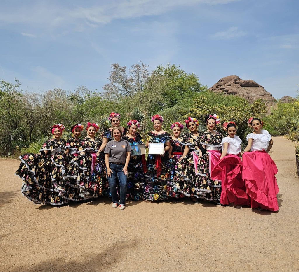 Gina Ortiz, integrante del ballet folclórico Las Damas del Folclor, que es dirigido por la coreógrafa Diana Hinojosa y fue parte de la celebración del sexto aniversario de Conecta Arizona en el Jardín Botánico del Desierto, destacó el valor personal y también artístico de la experiencia de participar en esta agrupación, que en sus presentaciones difunde la cultura hispana en Estados Unidos, y de México en particular.