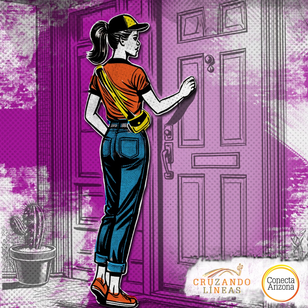 “Los canvassers son las personas que se contratan o son voluntarios para tocar puertas para llevar información de elecciones y los candidatos en los ciclos electorales. Llegan a tu casa, tocan puertas y platican contigo cuando tienes dudas o necesitas información para saber cómo votar”. Así definió Kassandra Alvarez, autora del episodio De puerta en puerta, del podcast Cruzando Líneas, la tarea que realizan los activistas que, en la campaña electoral de 2024, recorrieron las zonas rurales de Arizona para impulsar el voto.
