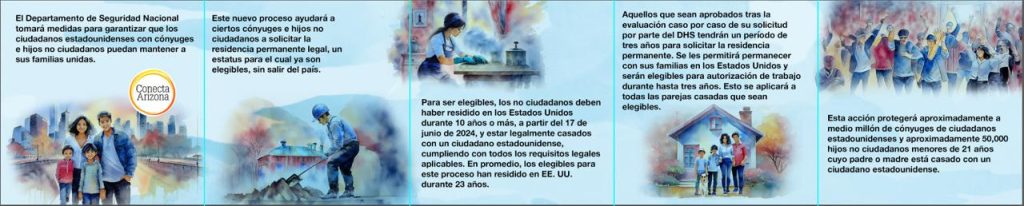 🔵 Para ser elegibles, los no ciudadanos deben, a partir del 17 de junio de 2024, haber residido en los Estados Unidos durante 10 o más años y estar legalmente casados con un ciudadano estadounidense, cumpliendo al mismo tiempo con todos los requisitos legales aplicables. En promedio, quienes son elegibles para este proceso haber residido en los Estados Unidos durante 23 años.