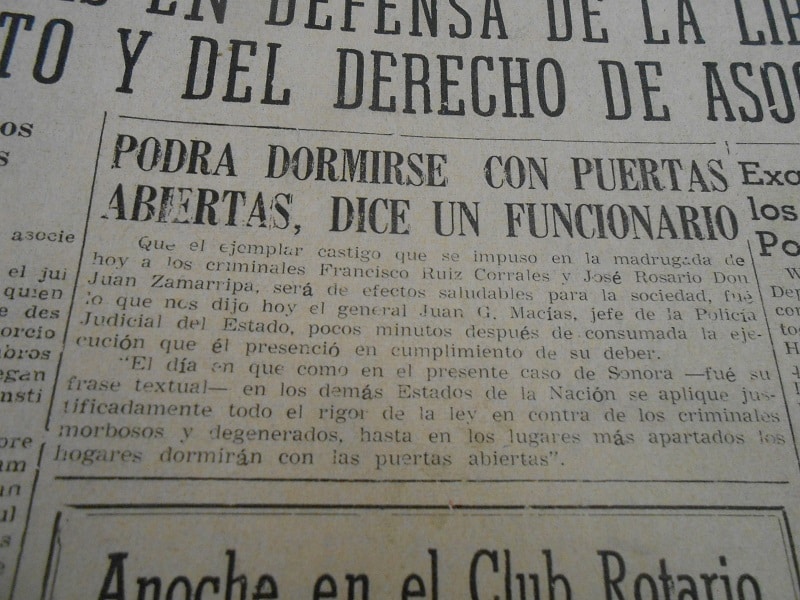 En Sonora se abolió la pena de muerte, por cualquier modalidad o procedimiento, el 7 de febrero de 1975; los últimos fusilados fueron “Zamarripa”, como más se le menciona, y Ruiz Corrales. Mientras que, en México, la pena capital fue suspendida en el año 2005. Este tipo de delitos siguen cometiéndose.