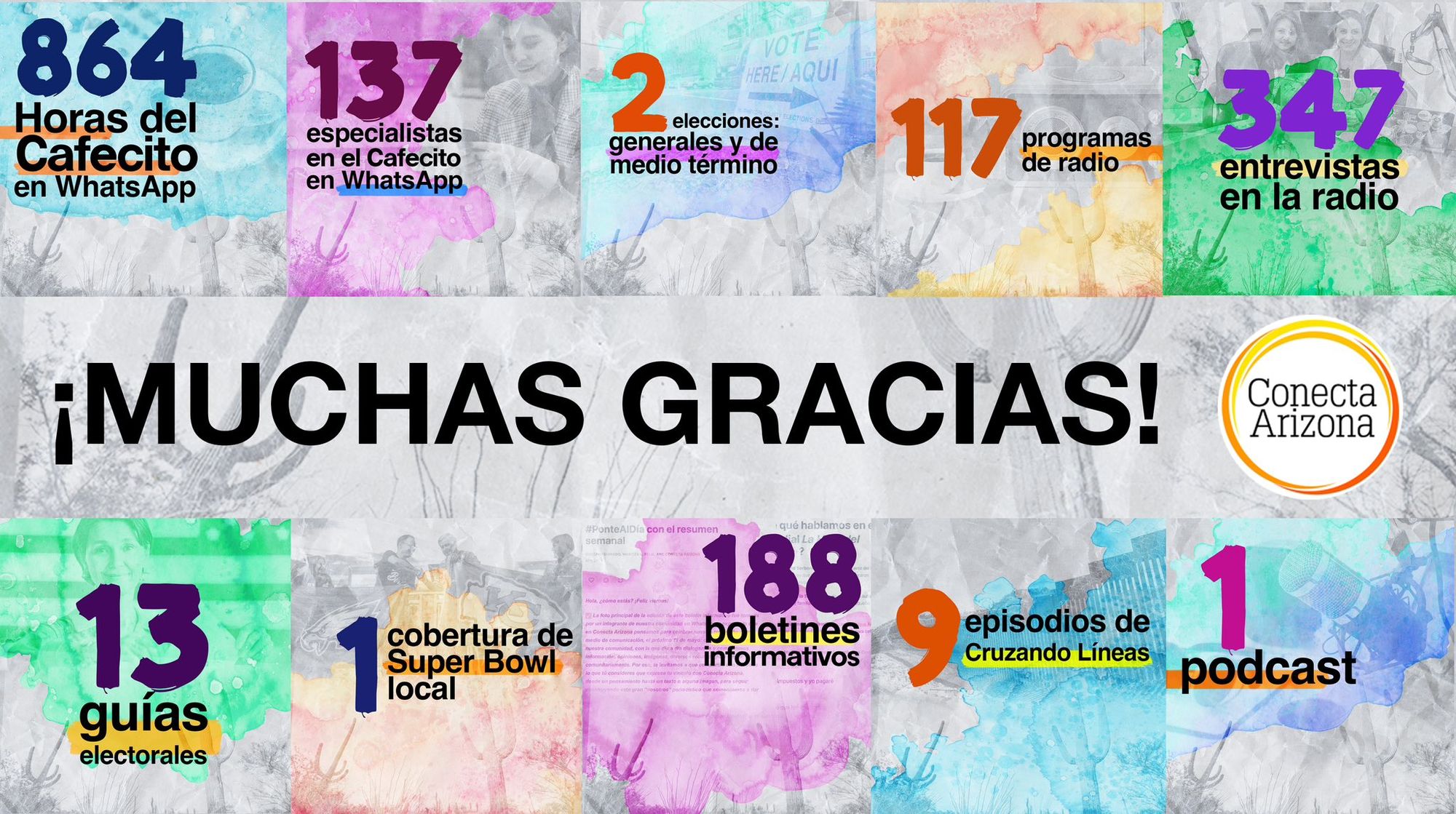 En su agradecimiento a la comunidad de Conecta Arizona, su fundadora y directora Maritza L. Félix señaló ayer en el grupo de WhatsApp, donde día a día late nuestro periodismo comunitario: “Esto es solo el reflejo de todos. Son nuestros logros. Ustedes son el 90% de este proyecto, nosotros hacemos solamente el resto”.