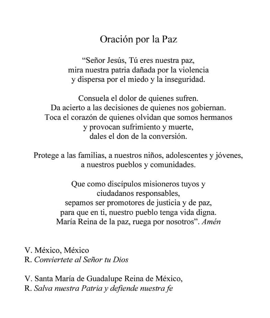 ️ 🗨️“Repicarán las campanas de todas las iglesias haciendo un llamado a la paz, un alto a la violencia, la delincuencia, los asesinatos. Hagamos oración: Dios con nosotros, ¿quién contra nosotros?”.