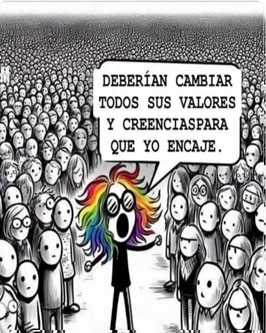 Ya casi no entro a Facebook, pero la última vez que lo hice me encontré con una publicación que me dejó pensando. Era una ilustración de una multitud en blanco y negro, con una persona en el centro con el cabello teñido de arcoíris diciendo: “Deberían cambiar todos sus valores y creencias para que yo encaje”. El texto que acompañaba la imagen acusaba a una “minoría en el poder” de cambiar las leyes para imponer su ideología. Pedía legisladores “valientes” que defendieran “nuestros principios y valores”, especialmente este 1 de junio, cuando por primera vez en México votaremos por jueces y magistrados.