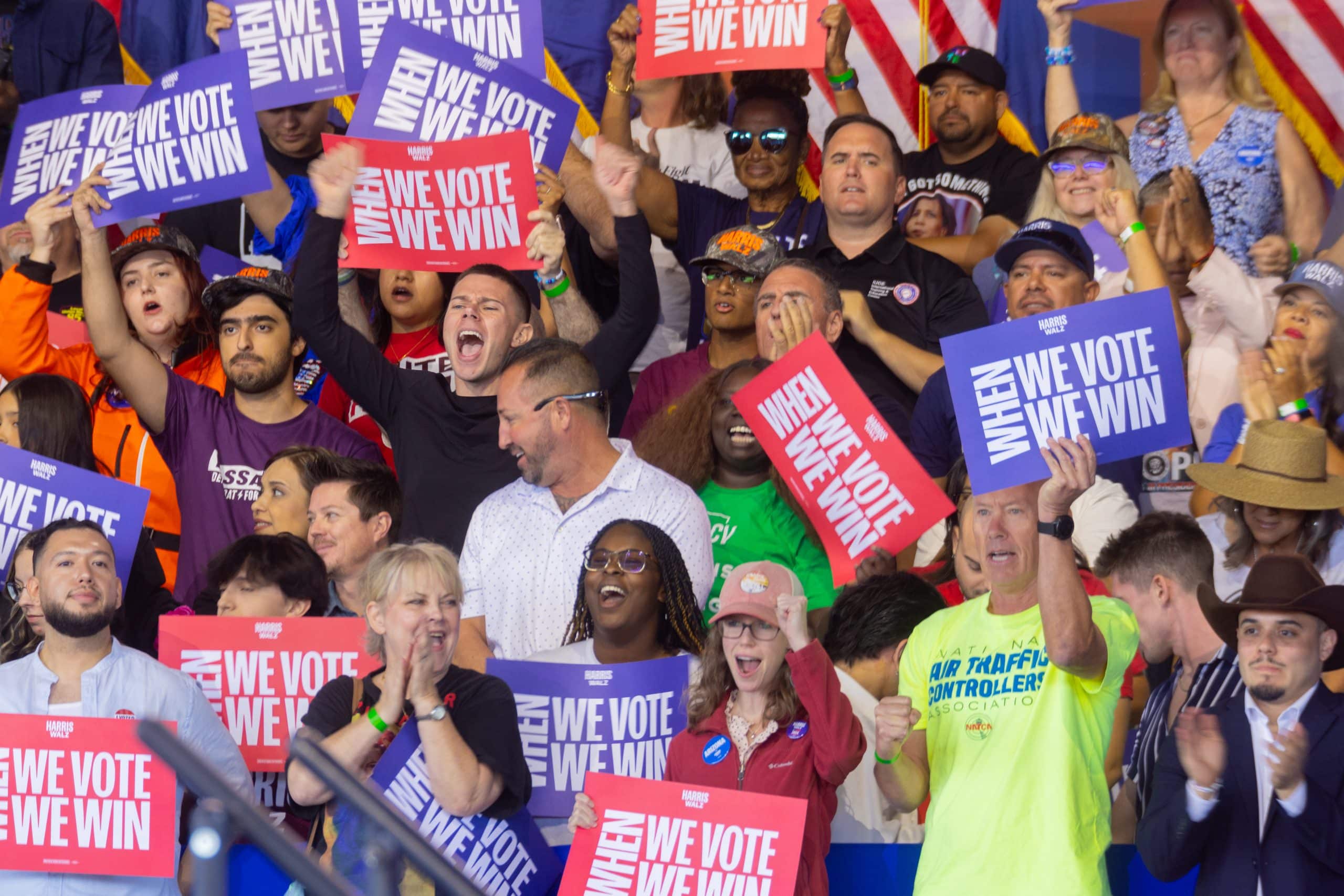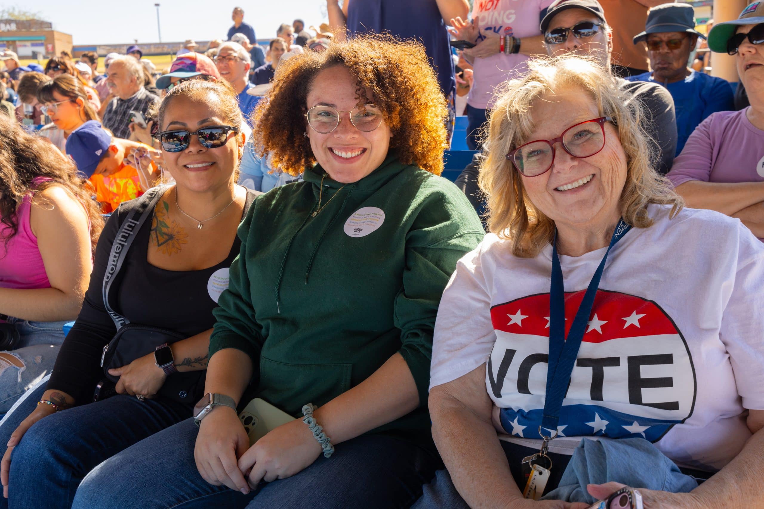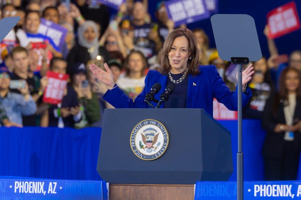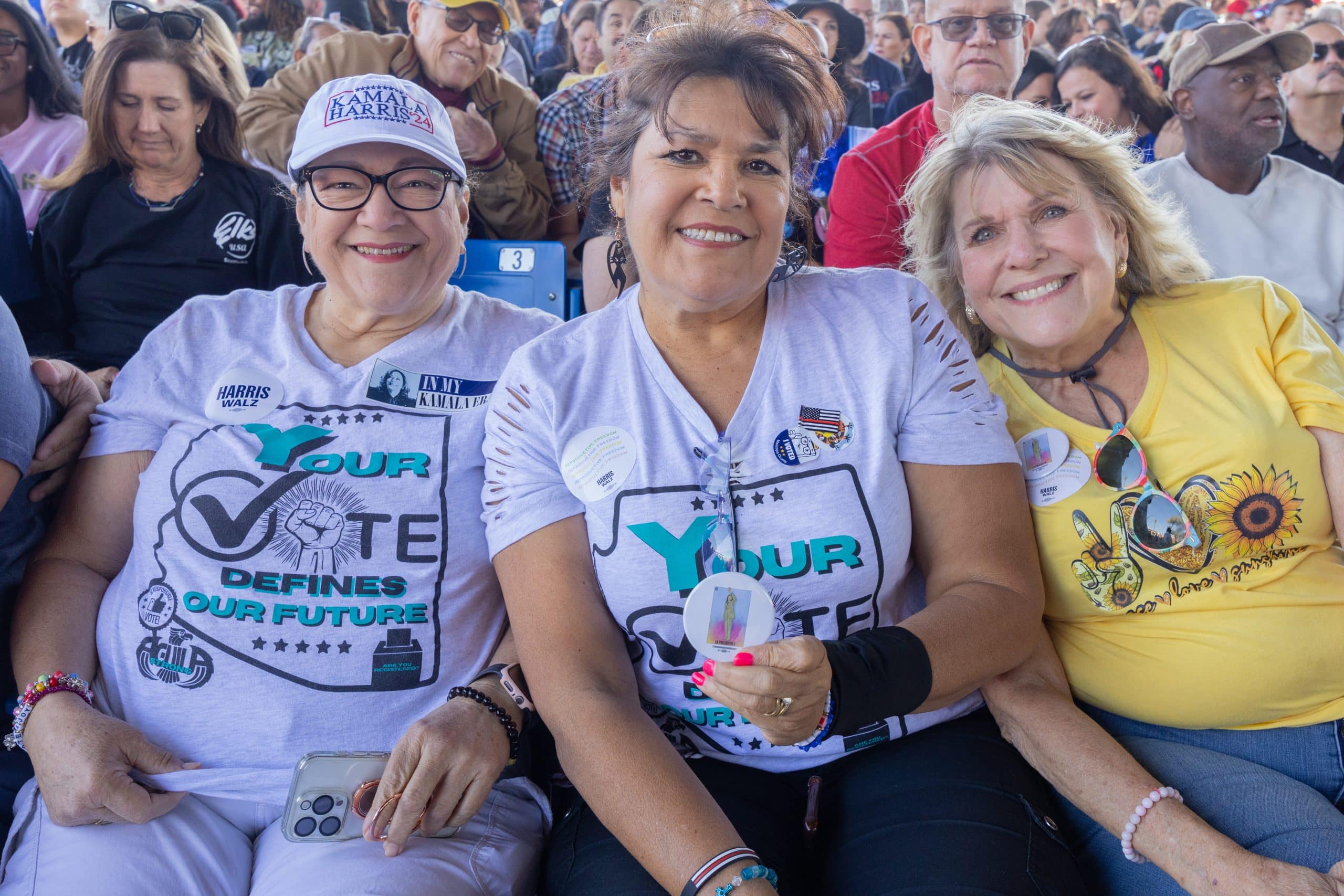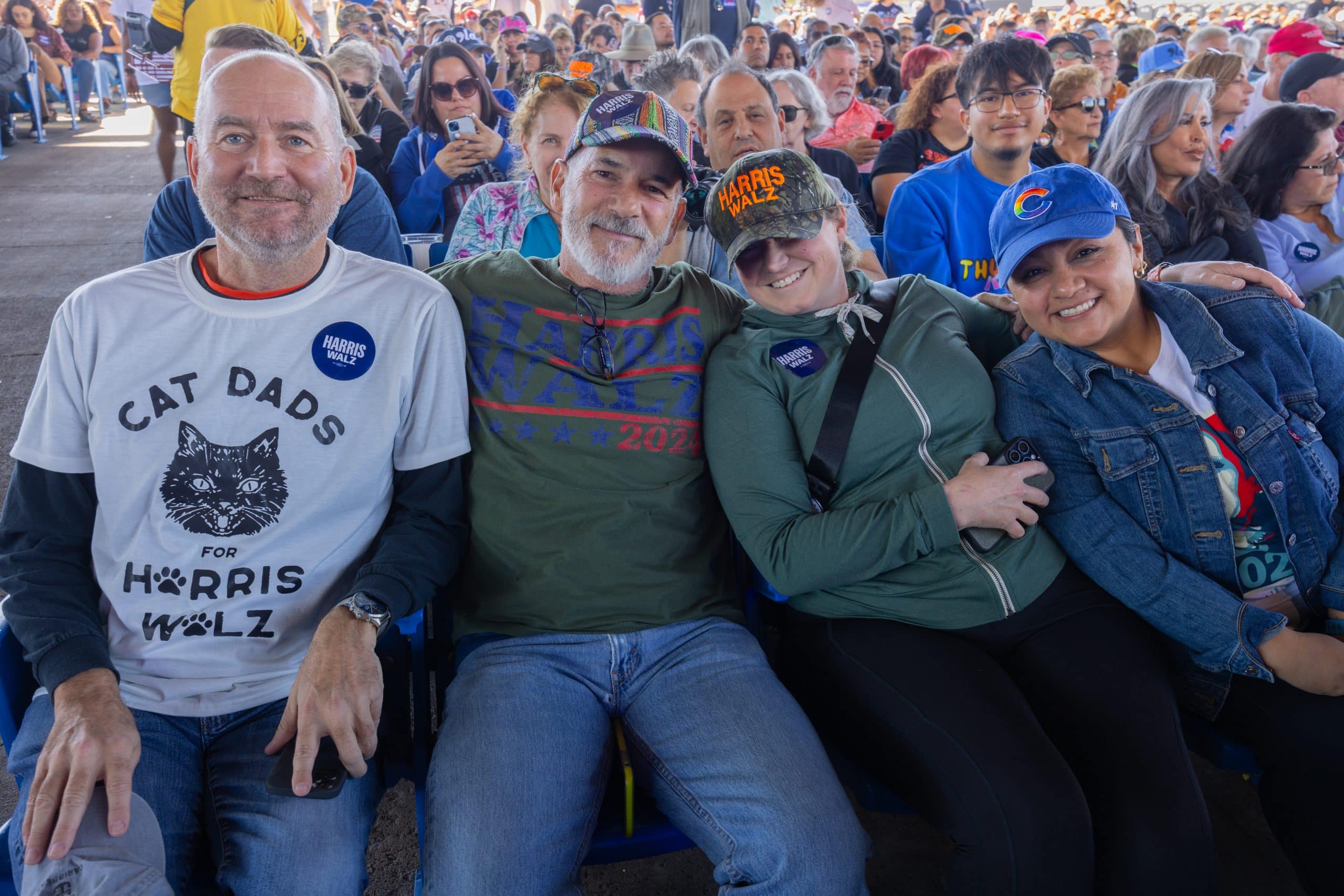Las puertas del Anfiteatro Talking Stick Resort, en el oeste de Phoenix, abrieron alrededor de las 10:00 de la mañana del jueves 31 de octubre. Cientos de asistentes, en su mayoría demócratas, llegaron para ratificar su apoyo a la fórmula de Harris y Walz. Hacían olas, bailaban y celebraban por adelantado los resultados electorales del 5 de noviembre.