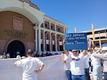 En la puerta de Palacio de Gobierno, los manifestantes pedían ser recibidos por el gobernador Alfonso Durazo, con un megáfono mencionaron cuánto tiempo tienen sin ver a sus hijos, algunos nombraron meses, otros años. A la distancia preguntaban Alfonso Durazo, tú que eres abuelo, ¿qué sentirías si no te dejaran ver a tu nieta? El mandatario no salió a la plaza a recibirlos.