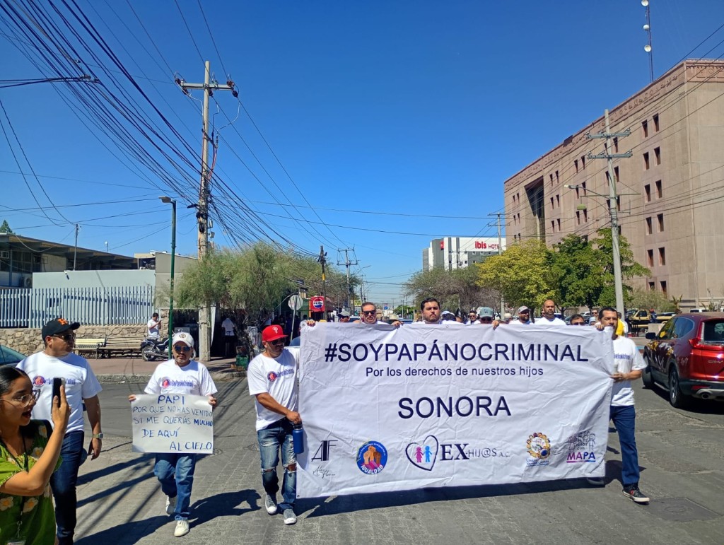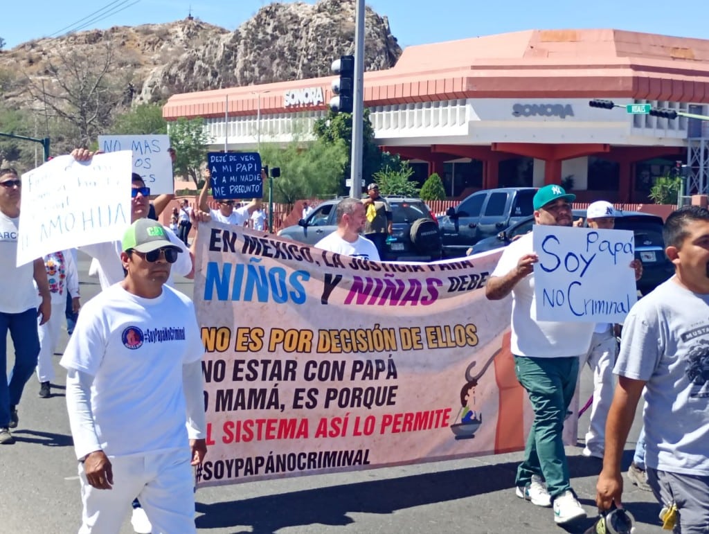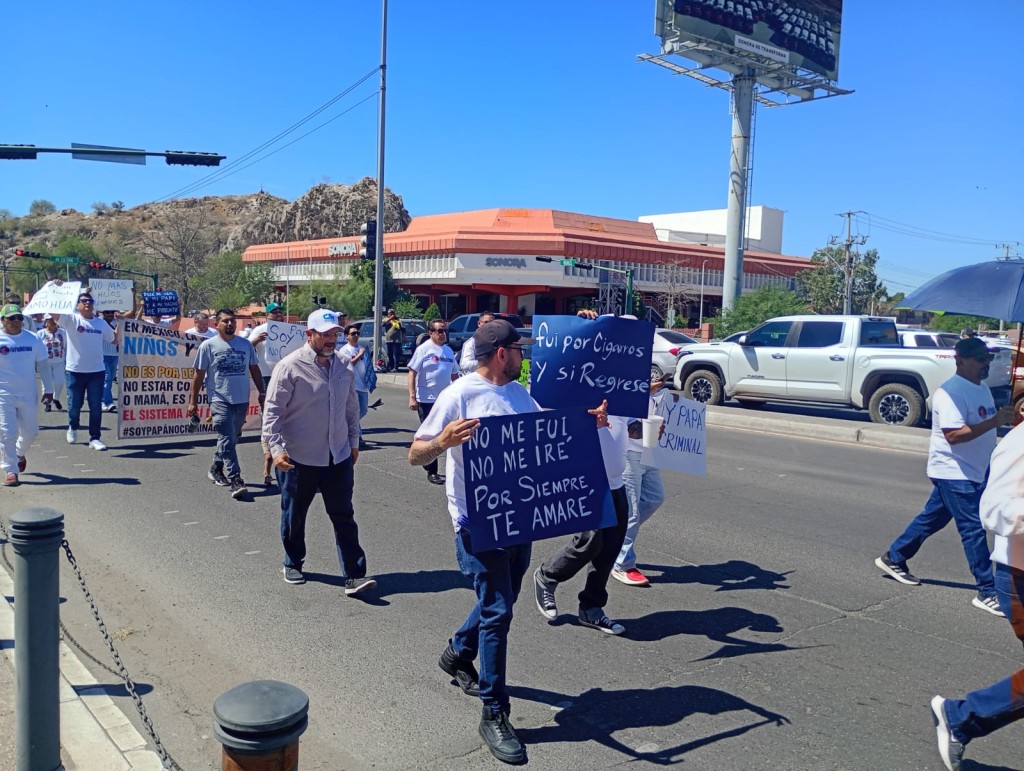 Hermosillo, Sonora.- Padres de niños de Hermosillo y de otros municipios de Sonora tomaron las calles la mañana del viernes para exigir que se atiendan sus casos en los juzgados y puedan ver a sus hijos. El movimiento “Soy papá, no criminal” es el primero que se manifiesta públicamente para que se les regrese el derecho de ser padres presenciales.