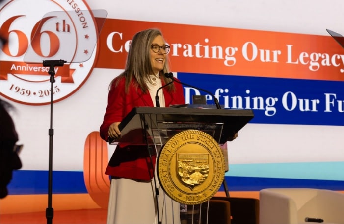 La gobernadora Katie Hobbs también tomó el micrófono, en sus palabras al público expresó que, lo que comenzó como una idea visionaria entre dos gobernadores, ha crecido hasta convertirse en una de las relaciones binacionales “más duraderas y poderosas del continente”. Manifestó estar comprometida con continuar las relaciones bajo las condiciones de respeto mutuo y prosperidad compartida “y, cuando se trata de los amigos internacionales de Arizona, no hay ninguno más importante que México, nuestro principal socio comercial”.