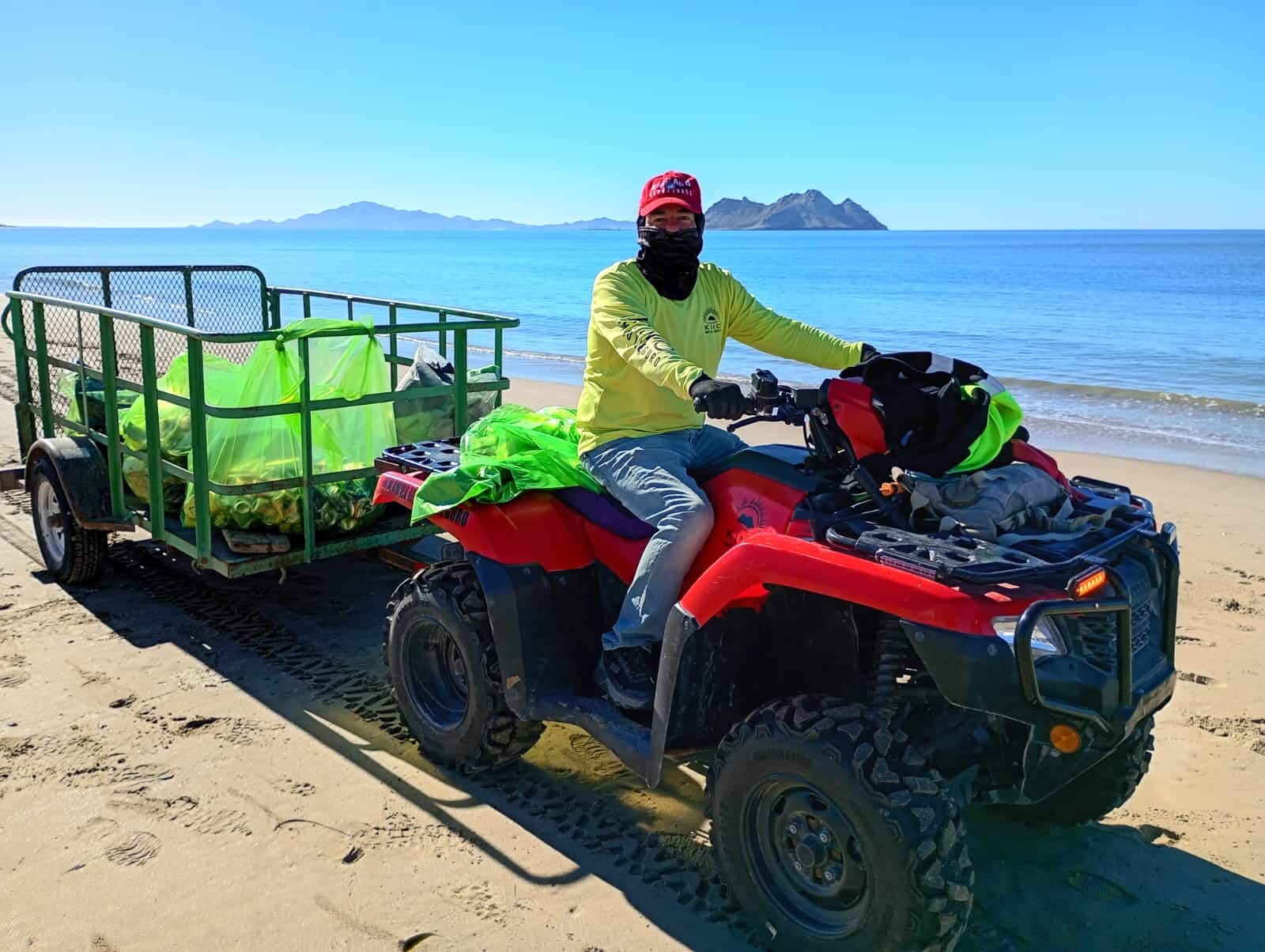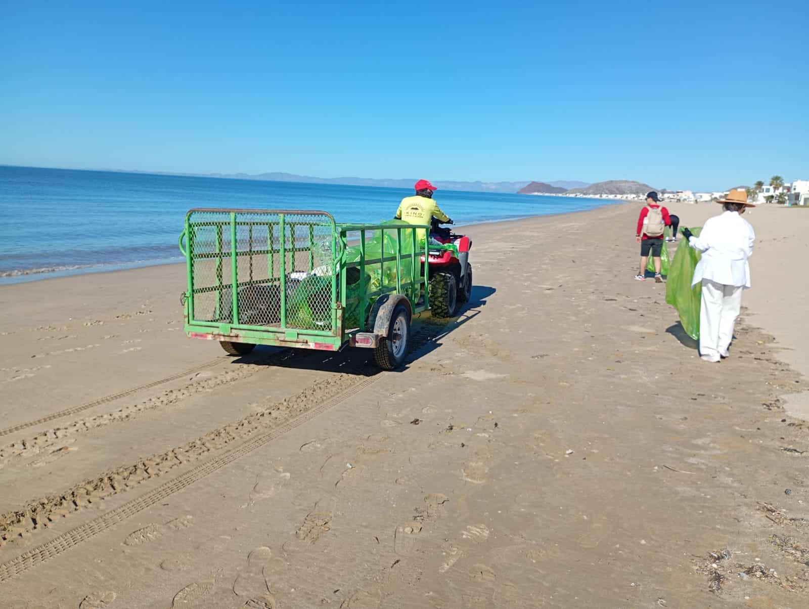 Ellos ya son expertos en el tema, comentó Iván. Y así fue, mientras los voluntarios caminaban rumbo “al final” de Kino nuevo, desde el área de palapas y baños del lugar, cada tantos minutos se acercaba una moto de cuatro llantas con una batanga en la que se iban depositando los desechos que, al final dieron un peso de 234 kilos.