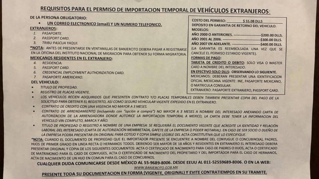 Antes de realizar el trámite vehicular, la persona debe registrarse en una oficina del Instituto Nacional de Migración (INM) para obtener su forma migratoria. Además, quien realiza el trámite debe proporcionar un número telefónico y un correo electrónico.