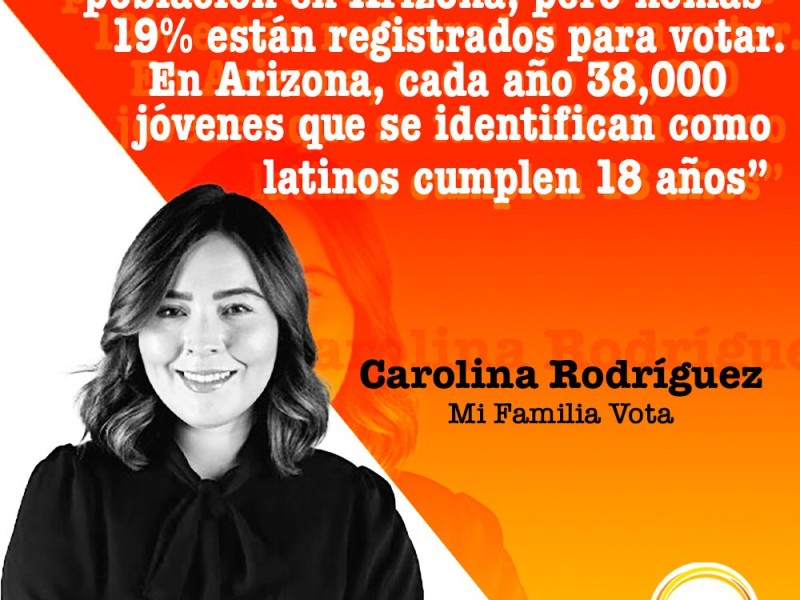 En Arizona, cada año, aproximadamente 38,000 jóvenes que se identifican como latinos cumplen 18 años. Con este dato demográfico, la directora estatal de la organización Mi Familia Vota, Carolina Rodríguez Greer, definió la importancia del voto latino en Estados Unidos y en Arizona en particular, donde la comunidad hispana alcanza al 32% de la población, aunque únicamente el 19% está registrada para votar.