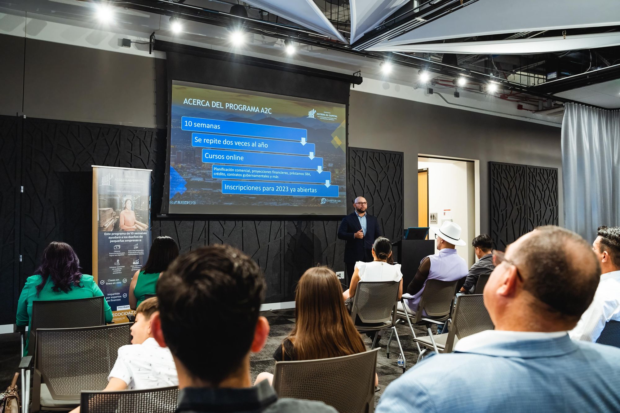 El programa se dicta en español, se llama A2C y es un acelerador financiero “diseñado para ayudar a las pequeñas empresas a prepararse para obtener capital y acelerar su crecimiento”, explicó Edgar Olivo, director de Compass CBS Foundation, organización que ofrece capacitaciones y recursos para emprendedores en Arizona con el fin de “fortalecer un ecosistema empresarial diverso, inclusivo y sostenible en Arizona”.
